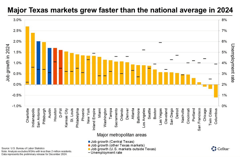 Major Texas markets grew faster than the national average in 2024