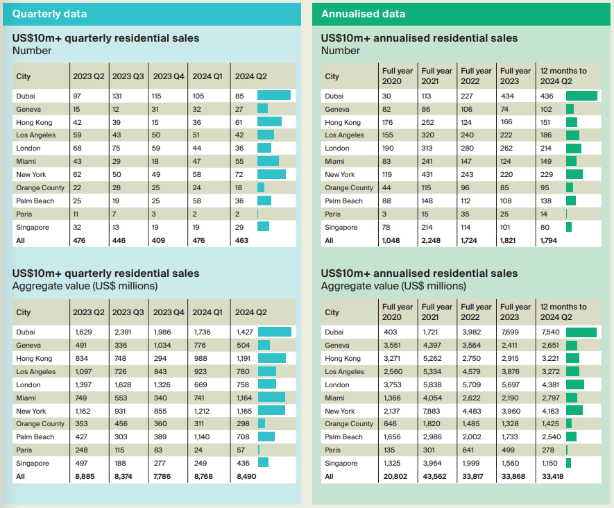 Market Leaders: Dubai, with 85 sales, leads globally, followed by New York (72) and Hong Kong (61), showing renewed demand from ultra-high-net-worth buyers.